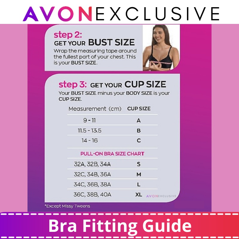 Heres how to measure your bra size. Hassle-free Christmas shopping at Avonshopph Millions of Filipinas love Avon Fashions because we understand that what you wear underneath is just as important as how you feel about your look. This is a guide only BRA SIZE MEASURING GUIDE FACT.